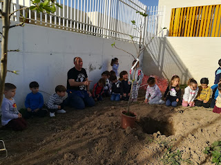 Emulando a Wangari Maathai, los dos grupos de niñas y niños de 3 años han sembrado sendas higueras. Con esta actividad se pretende la puesta en valor de los principios feministas y ecologistas.